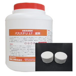 バスステリ17は、レジオネラ属菌や雑菌類、藻類対策として有効で、塩素剤の問題点(脱色・塩素臭・pH・濃度管理)を改善できる臭素系除菌剤です。